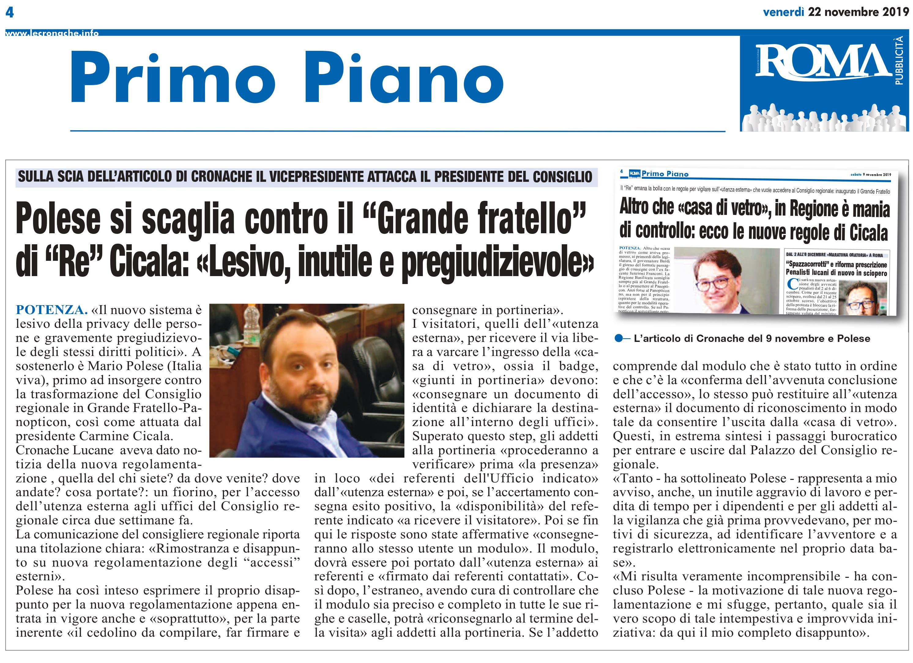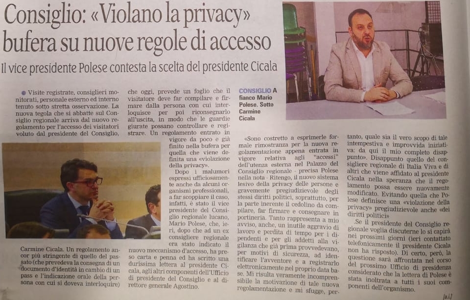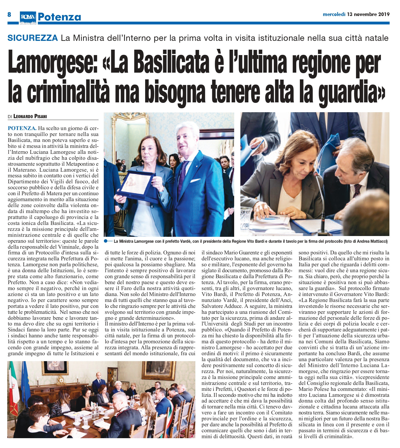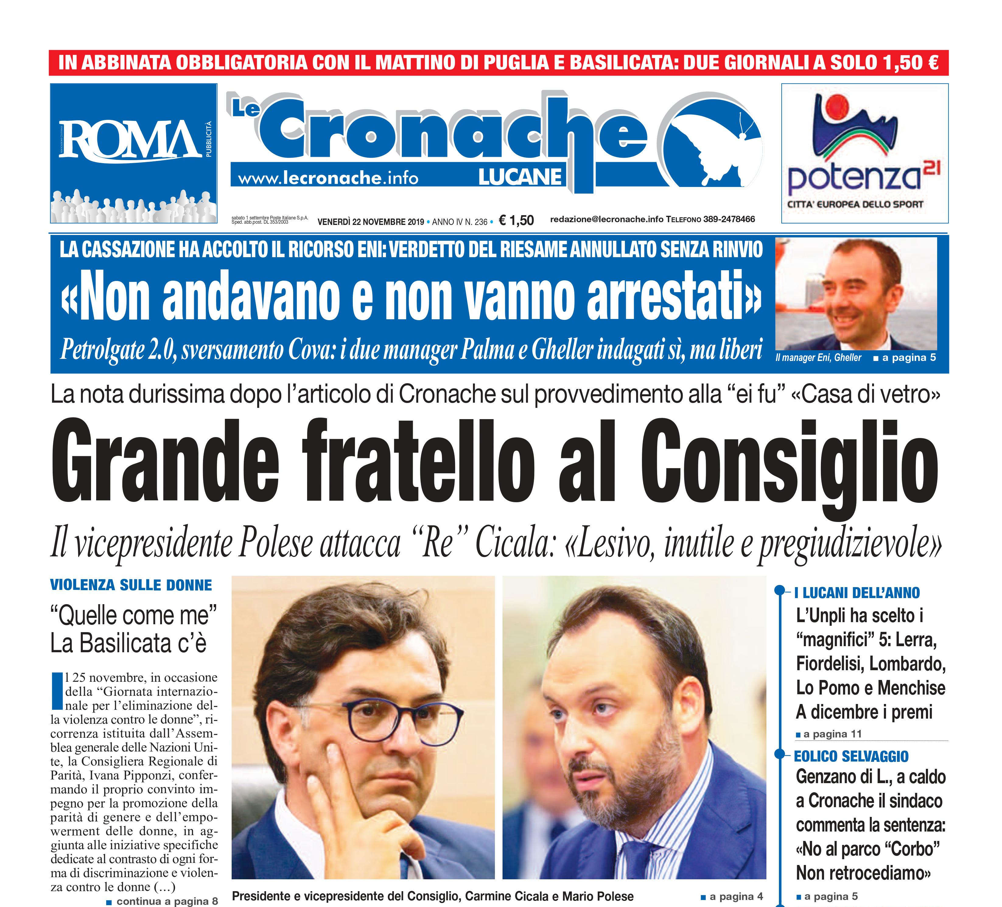 Gazzetta di Basilicata, edizione del 22 novembre 2019