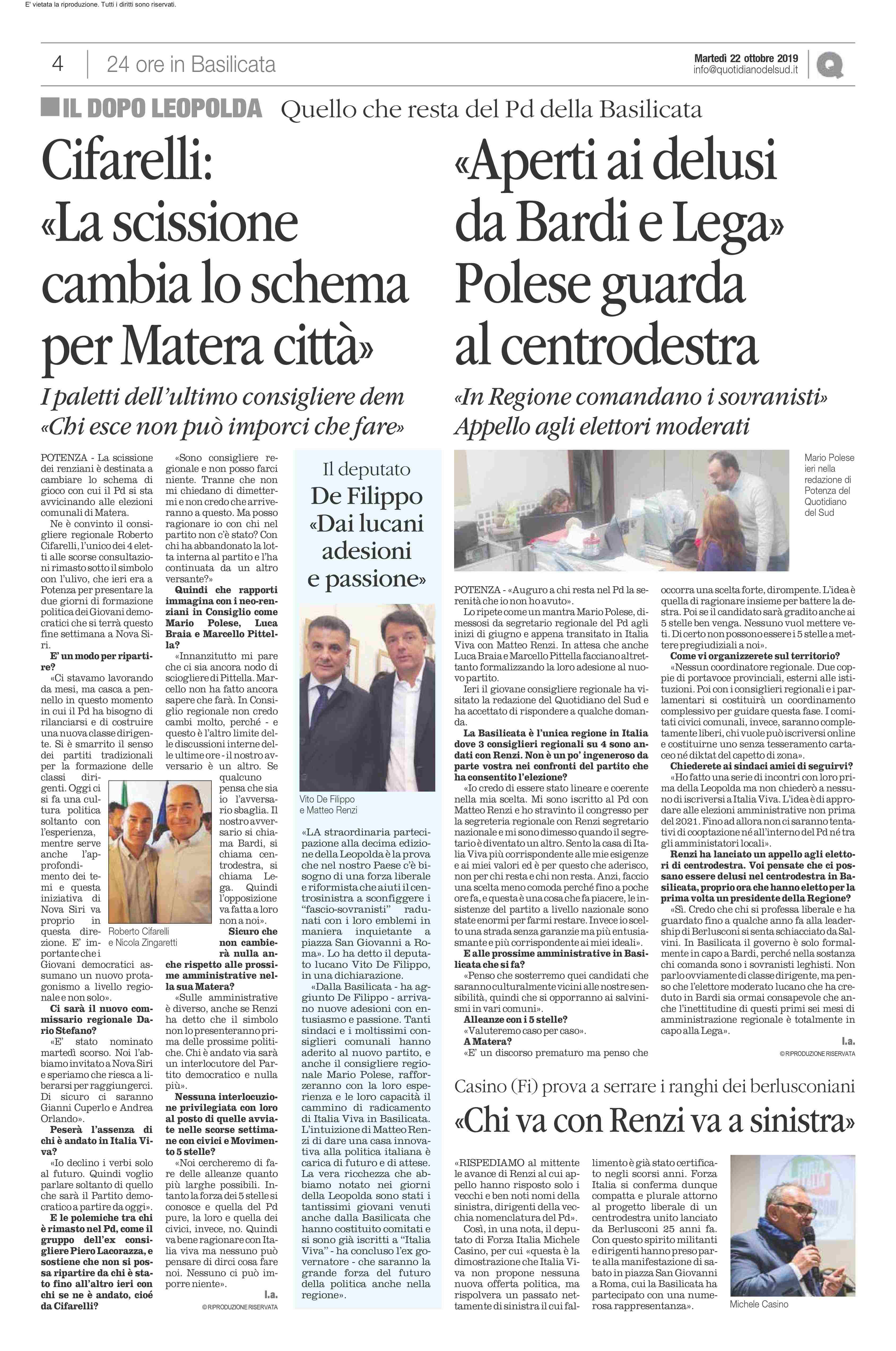 Quotidiano del Sud, edizione del 22 ottobre 2019
