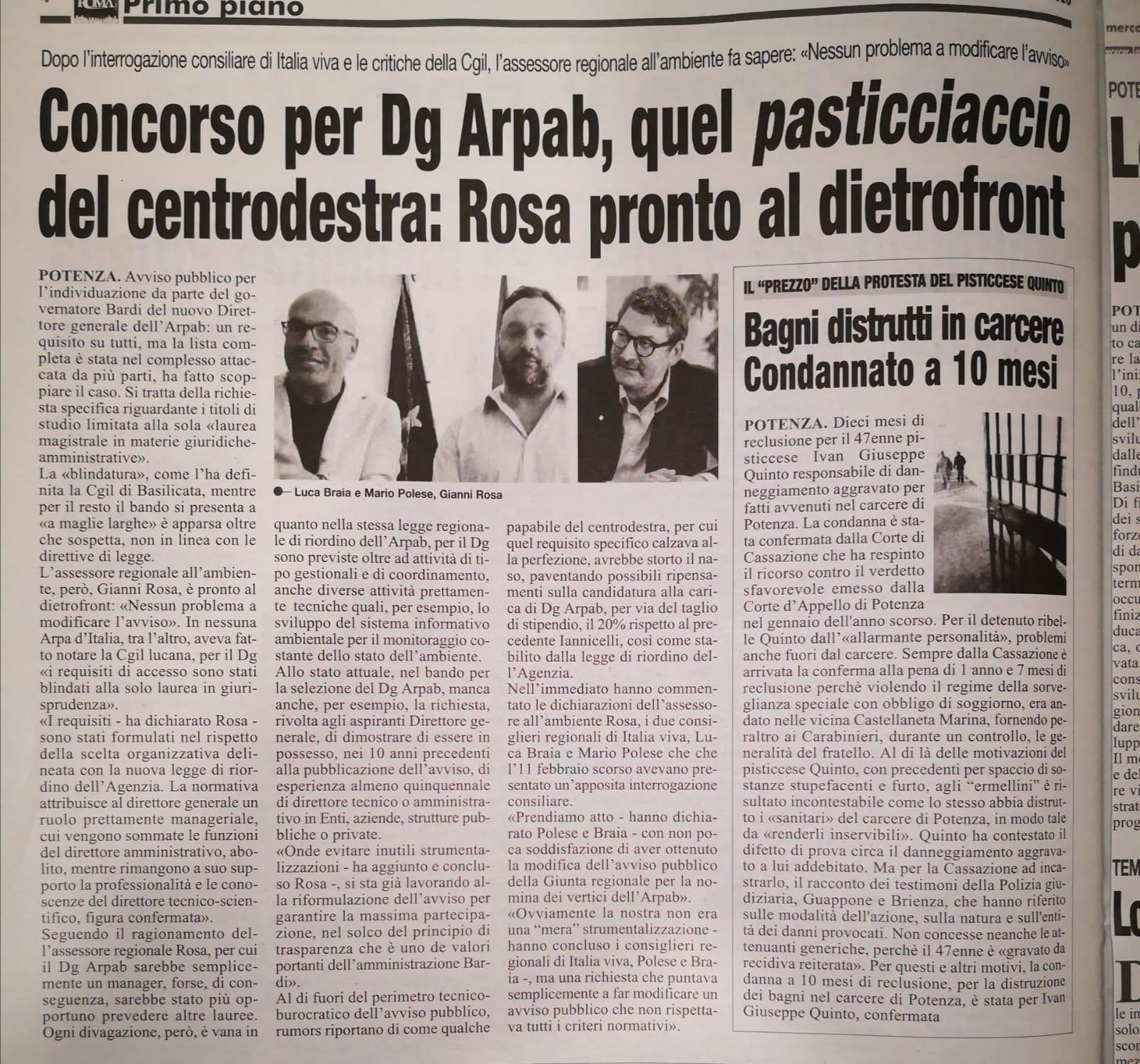 Gazzetta della Basilicata, edizione del 22 febbraio 2020