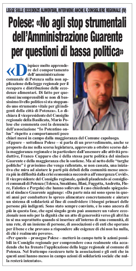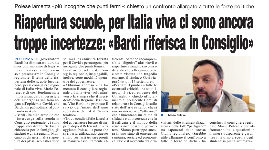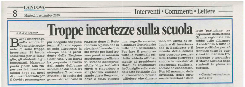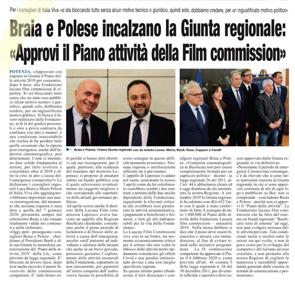Gazzetta della Basilicata, edizione del 24 agosto 2020
