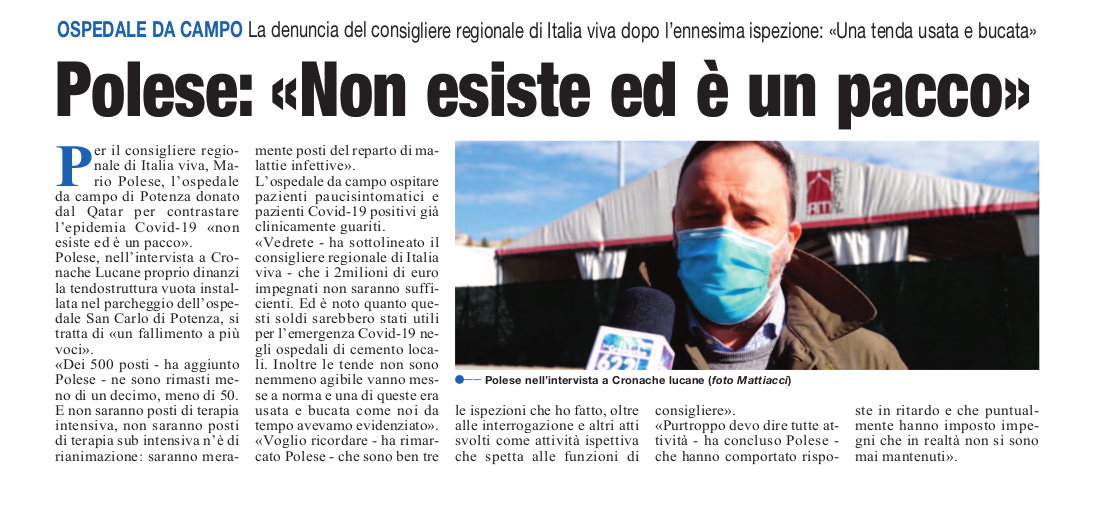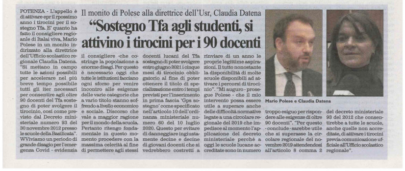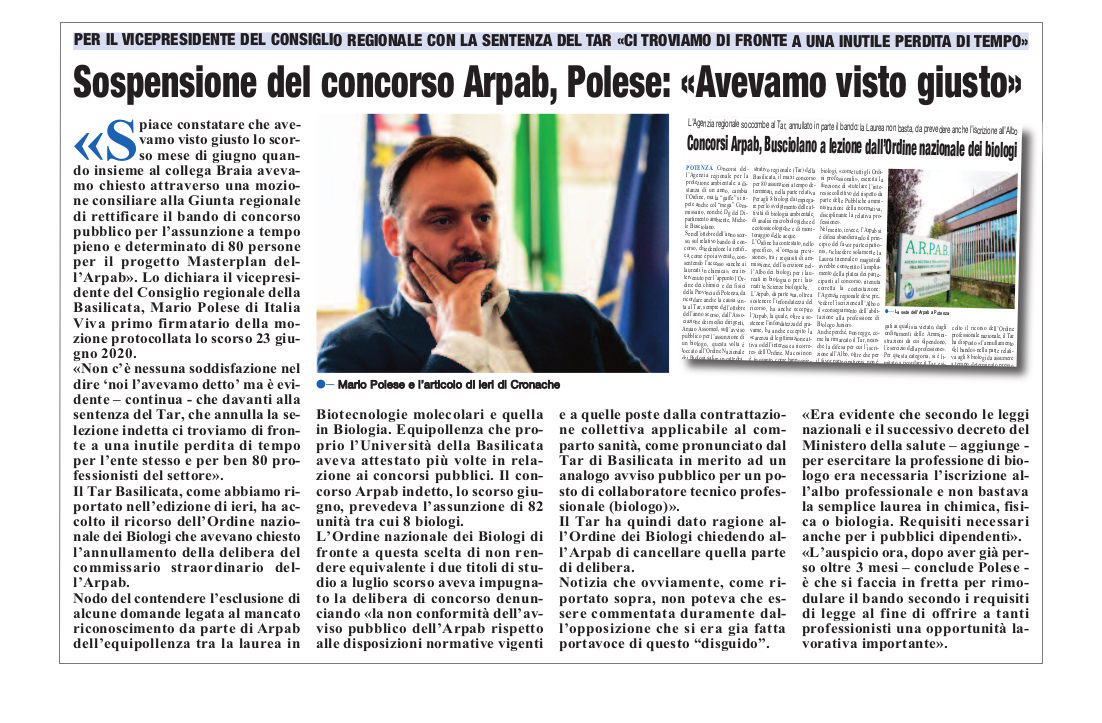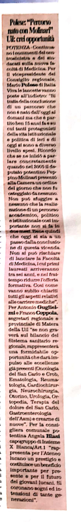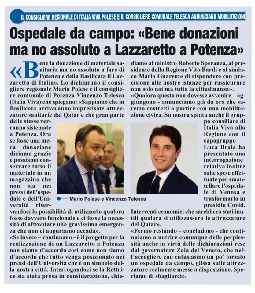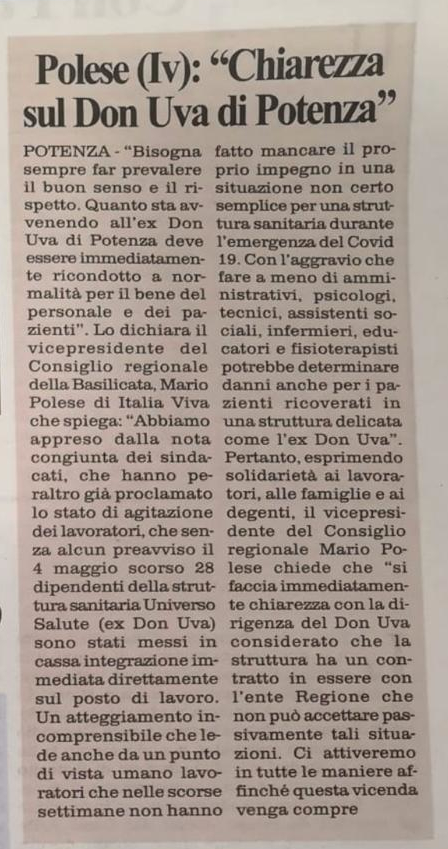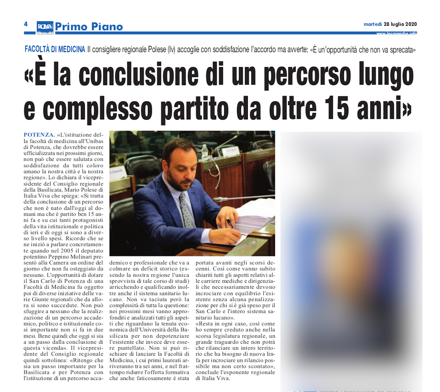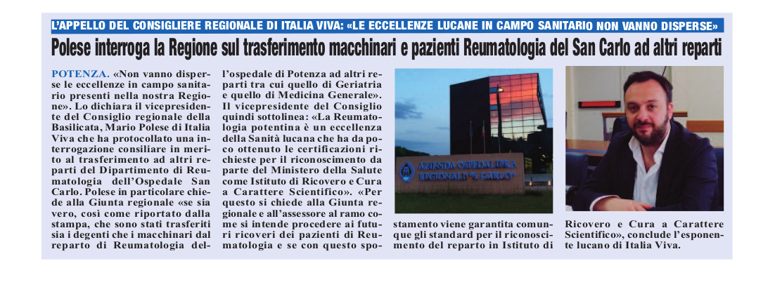 “Finalmente una notizia positiva dalla Sanità della Basilicata: sono stati mantenuti gli impegni con i 49 addetti sanitari del San Carlo che oggi, grazie alla delibera numero 90 del 2020 a firma del direttore generale Massimo Barresi, sono stati stabilizzati a tempo indeterminato. Si tratta di 6 infermieri, 3 ostetriche e 40 Oss”.