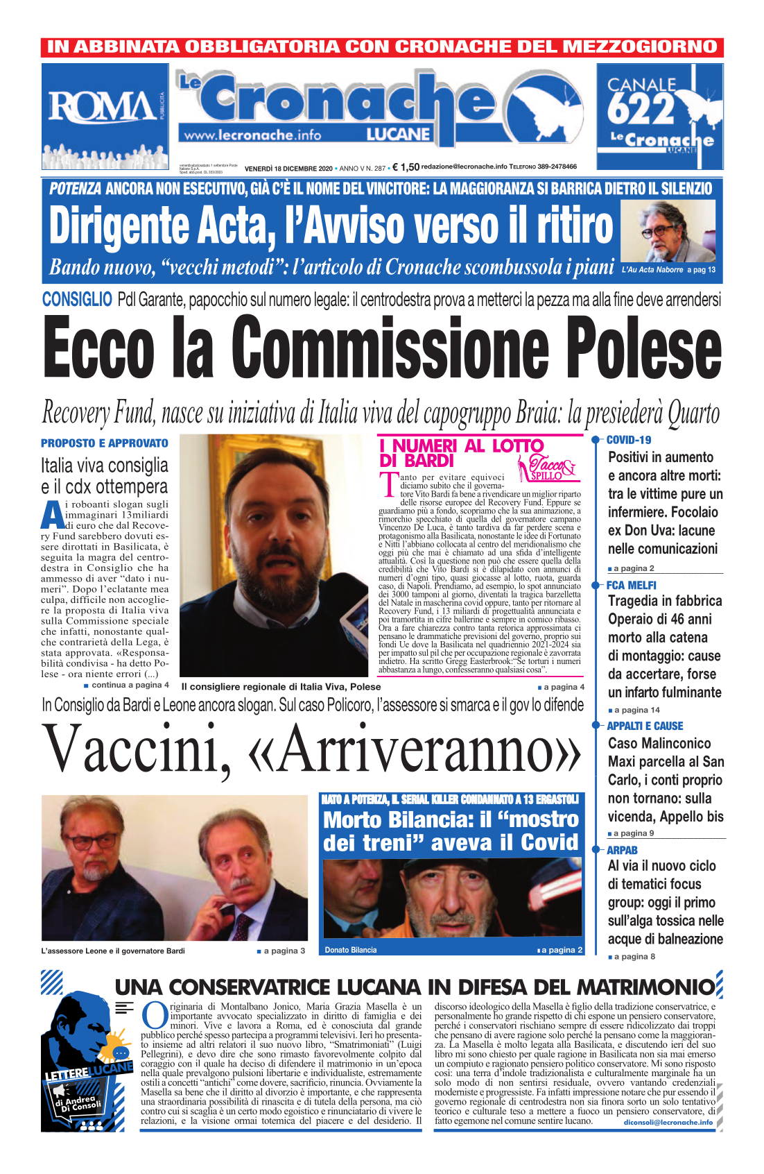 La Nuova del Sud, edizione del 2 dicembre 2020