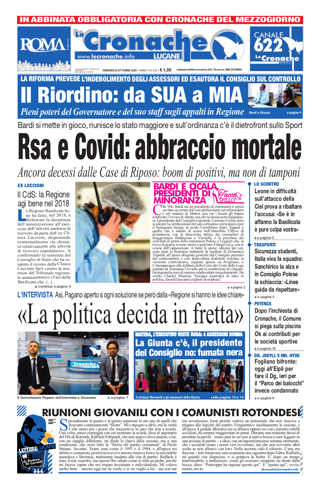 La Nuova del Sud, edizione del 27 ottobre 2020
