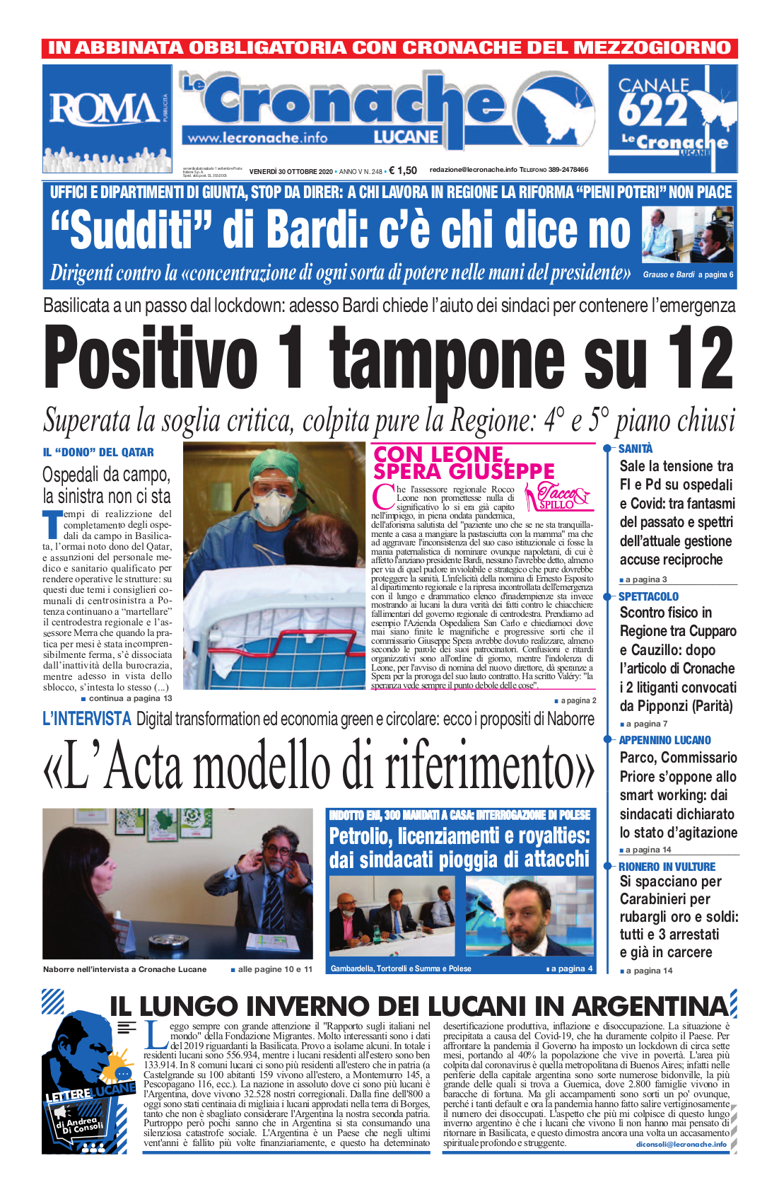 Quotidiano del Sud, edizione del 30 ottobre 2020