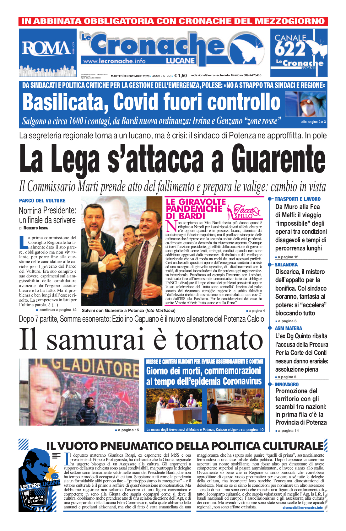 La Nuova del Sud, edizione del 3 Novembre 2020