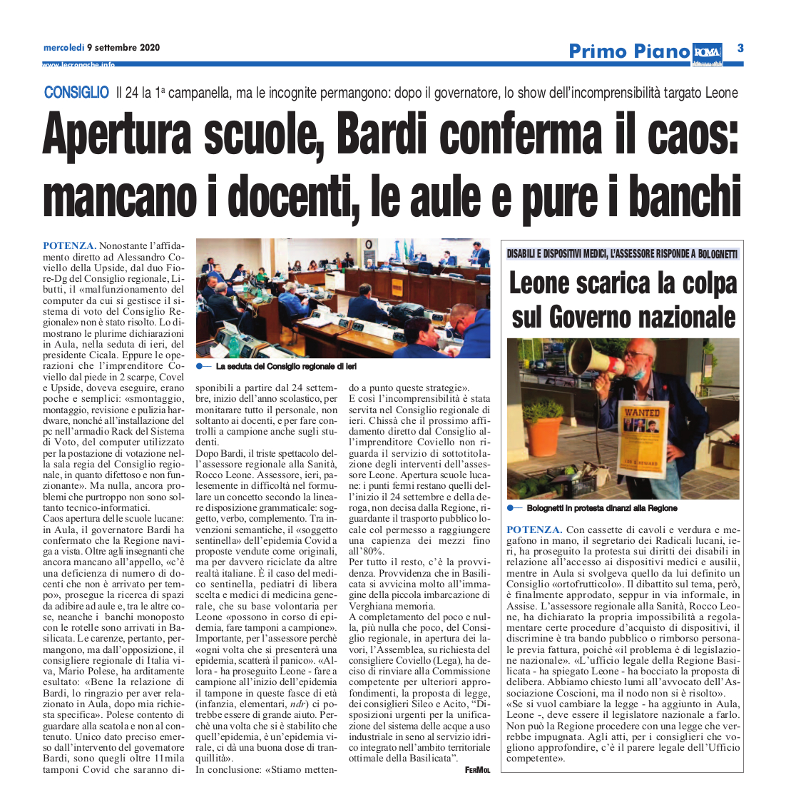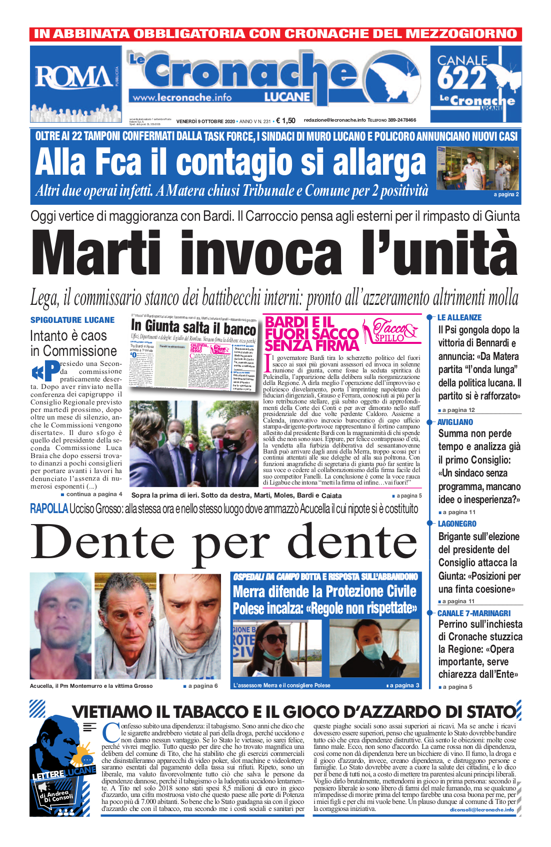 Quotidiano del Sud, edizione del 9 ottobre 2020