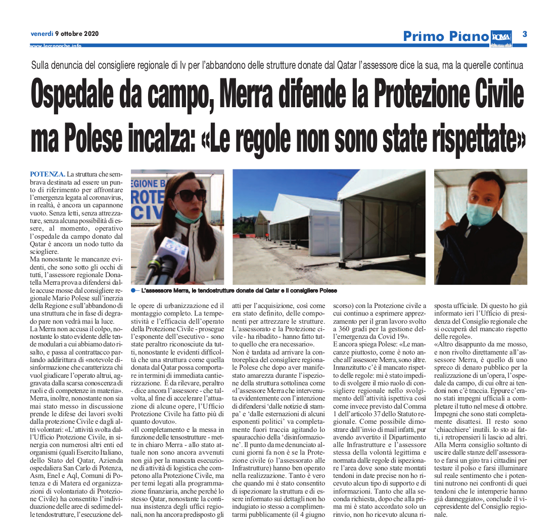 La Nuova del Sud, edizione del 9 ottobre 2020