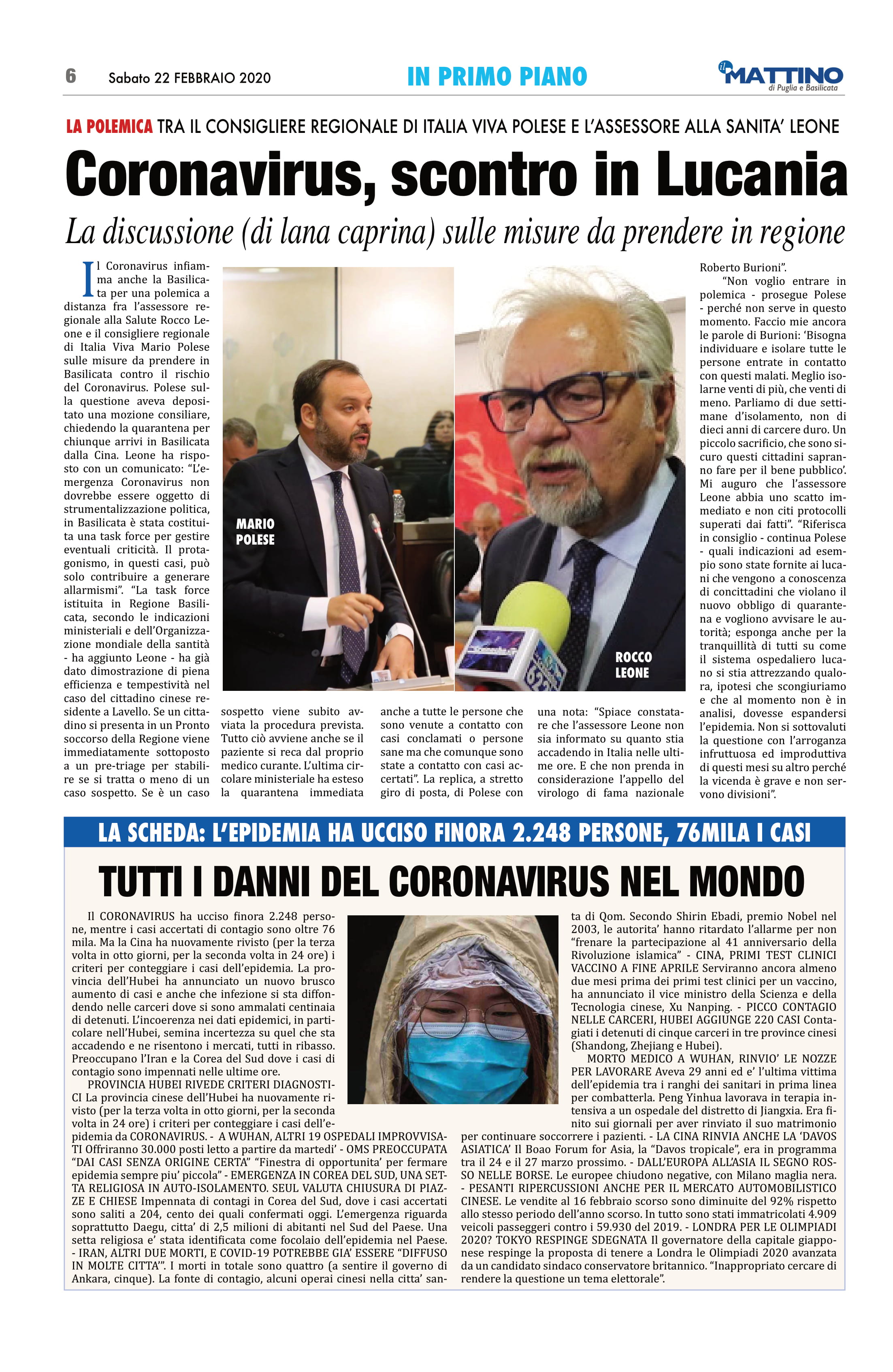 Mattino di Puglia e Basilicata, edizione del 22 febbraio 2019