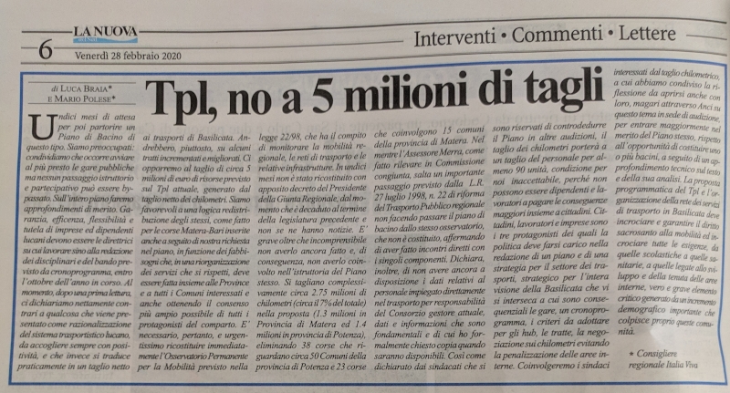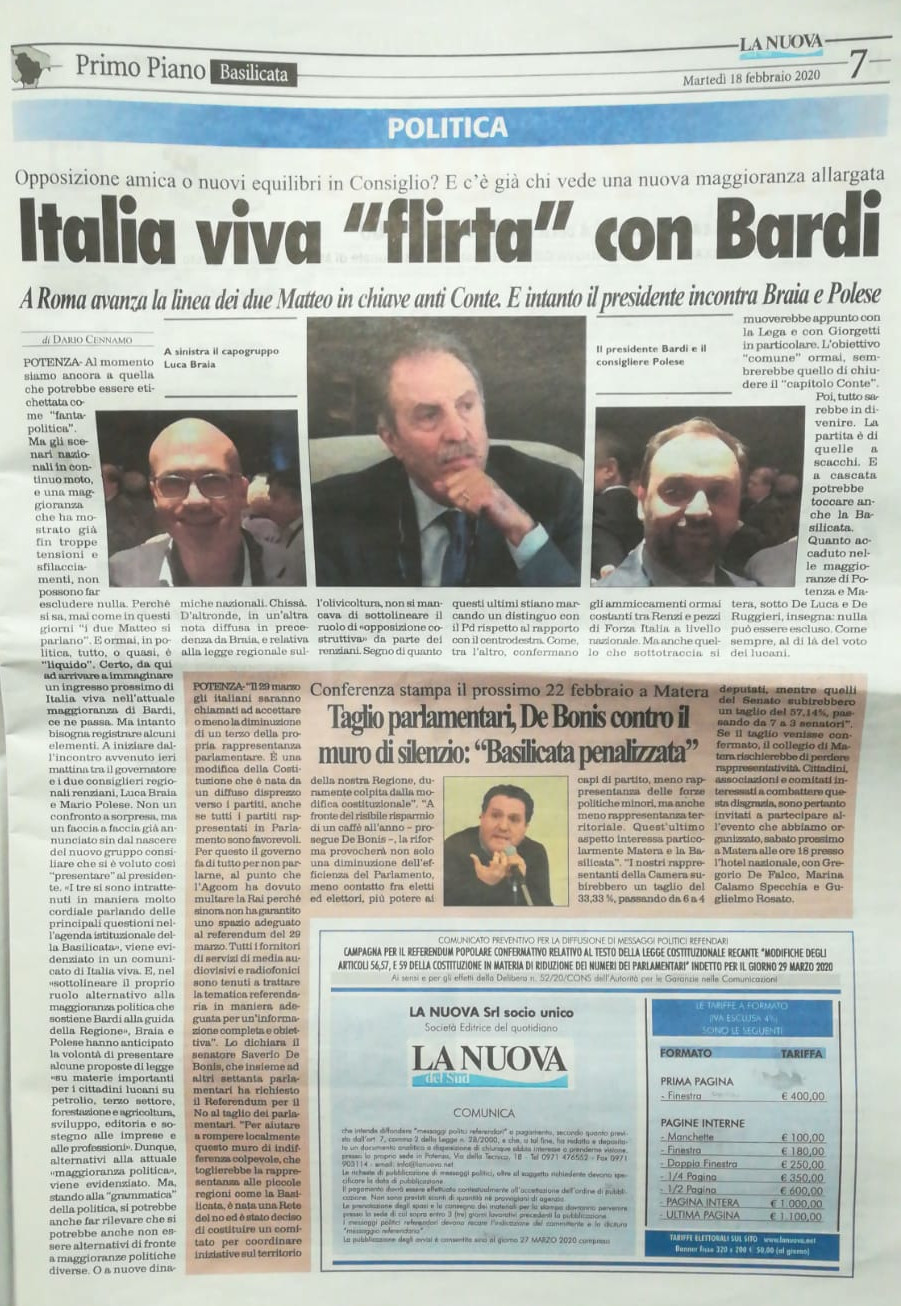 La Nuova del Sud, edizione del 19 febbraio 2020