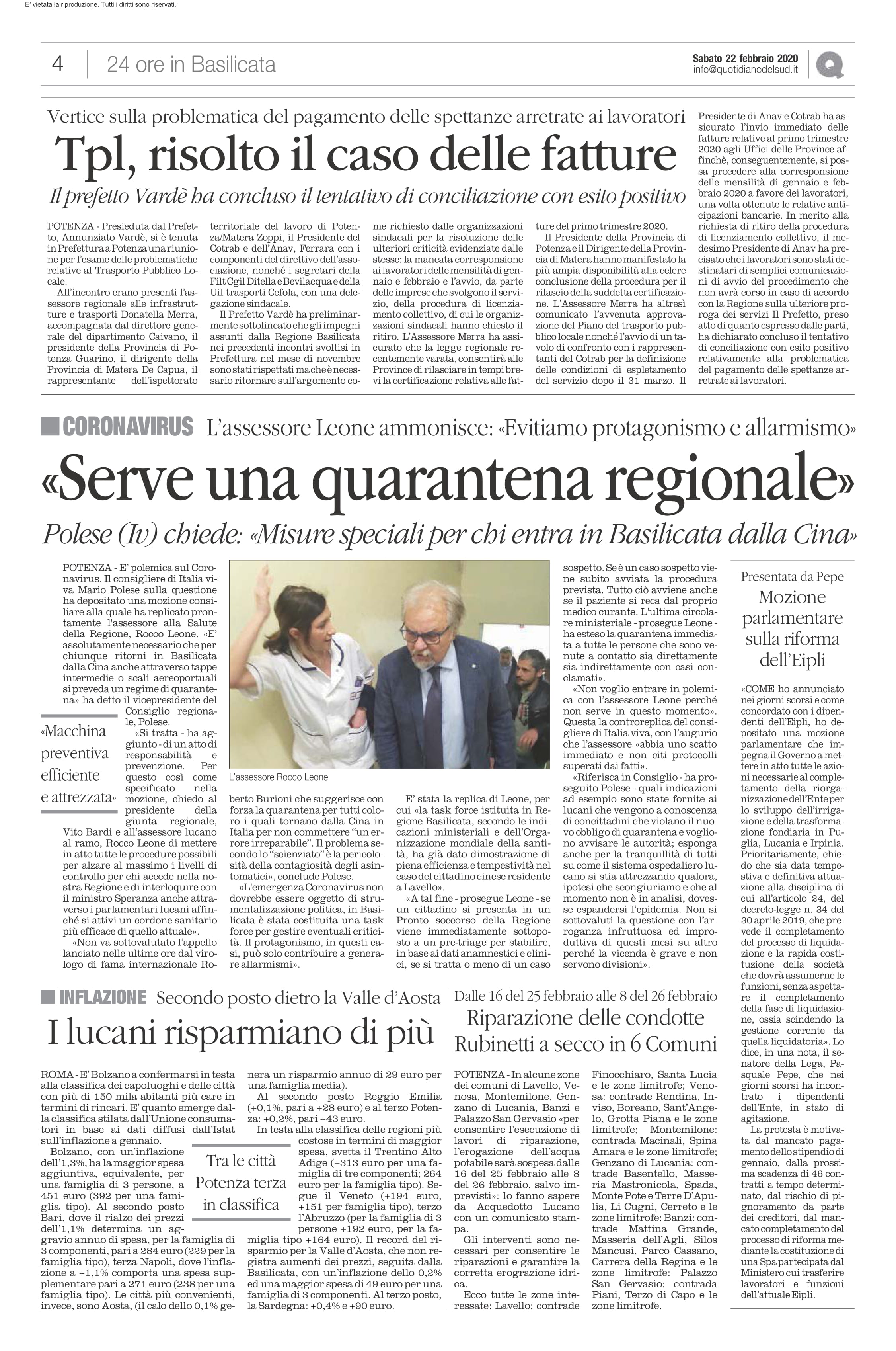Quotidiano del Sud, edizione del 28 febbraio 2020