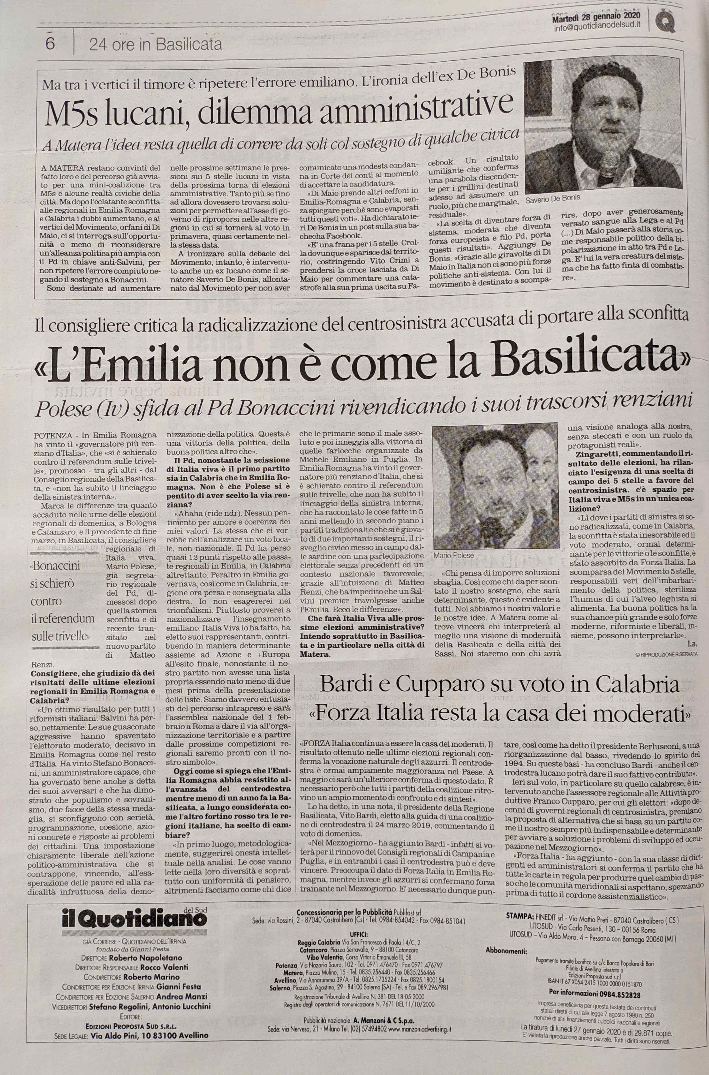 Quotidiano del Sud, edizione del 28 gennaio 2020